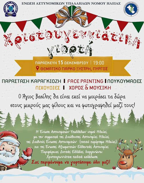 Η Ένωση Αστυνομικών Υπαλλήλων Νομού Ηλείας διοργανώνει Χριστουγεννιάτικη γιορτή