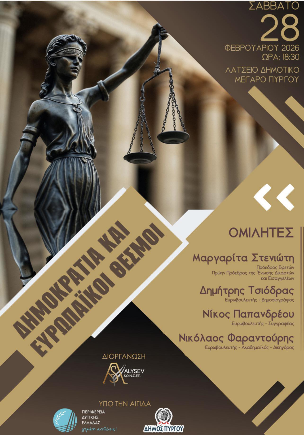 Hμερίδα με μεγάλο ενδιαφέρον και σημαντικούς ομιλητές διοργανώνεται το Σάββατο 28/2 στον Πύργο (Λάτσειο Δημοτικό Μέγαρο), στις 6.30 το απόγευμα.