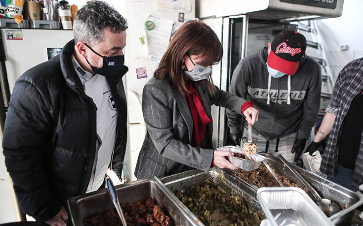 Επισκέφθηκε επίσης την κοινωνική κουζίνα «Άλλος Άνθρωπος», συνομίλησε με τους εθελοντές και τον Κωνσταντίνο Πολυχρονόπουλο, συμμετείχε στη διαδικασία διανομής του συσσιτίου και ευχήθηκε σε όλους καλές γιορτές και καλή χρονιά.