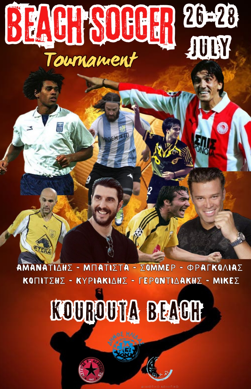 Γνωστά ονόματα του ποδοσφαίρου αλλά και του καλλιτεχνικού χώρου όπως ο Ντανιέλ Μπατίστα, Γιώργος Αμανατίδης, Χάρης Κοπιτσής, Χρήστος Μικές, Ηλίας Κυριακίδης, Κώστας Σόμερ, Κώστας Φραγκολιάς και Γιώργος Γεροντιδάκης, θα ξεδιπλώσουν το ταλέντο τους στην παραλία της Κουρούτας παίζοντας Beach Soccer.