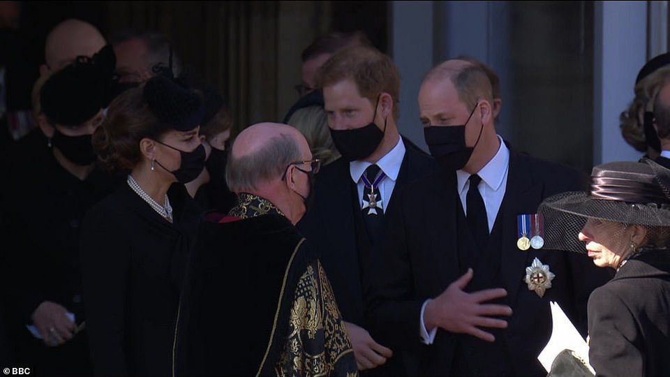 Τα βρετανικά μέσα έγραψαν επίσης τις προηγούμενες ημέρες ότι Χάρι Γουίλιαμ και Κάρολος είχαν μια σύντομη συνομιλία στους εξωτερικούς χώρους του κάστρου του Γουίνδσορ πριν ο καθένας αναχωρήσει για το σπίτι του, λίγο μετά την κηδεία του Φιλίππου. Νωρίτερα η κάμερα είχε καταγράψει την Κέιτ Μίντλετον να ανοίγει κουβέντα με τον Χάρι, στην οποία συμμετείχε και ο Γουίλιαμ και εν συνεχεία να ξεμακραίνει για να αφήσει τα δύο αδέλφια να τα πουν μεταξύ τους καθώς αναχωρούσαν από την εκκλησία και κατευθύνονταν προς τα σπίτια της βασιλικής οικογένειας στο Γουίνδσορ.