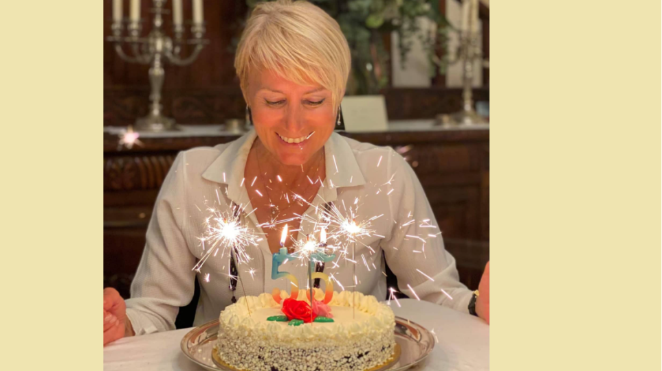 Η ίδια χαμογελαστή ενημέρωσε με τα κεράκια της τούρτας πως έγινε 55 ετών. Στο μήνυμά της στο Facebook έγραψε: «Αφήνω πίσω μου μόνο τις πίκρες. Και παίρνω όλες τις λύπες και τις χαρές των χρόνων που πέρασαν για να στολίσουν τα χρόνια που έρχονται».