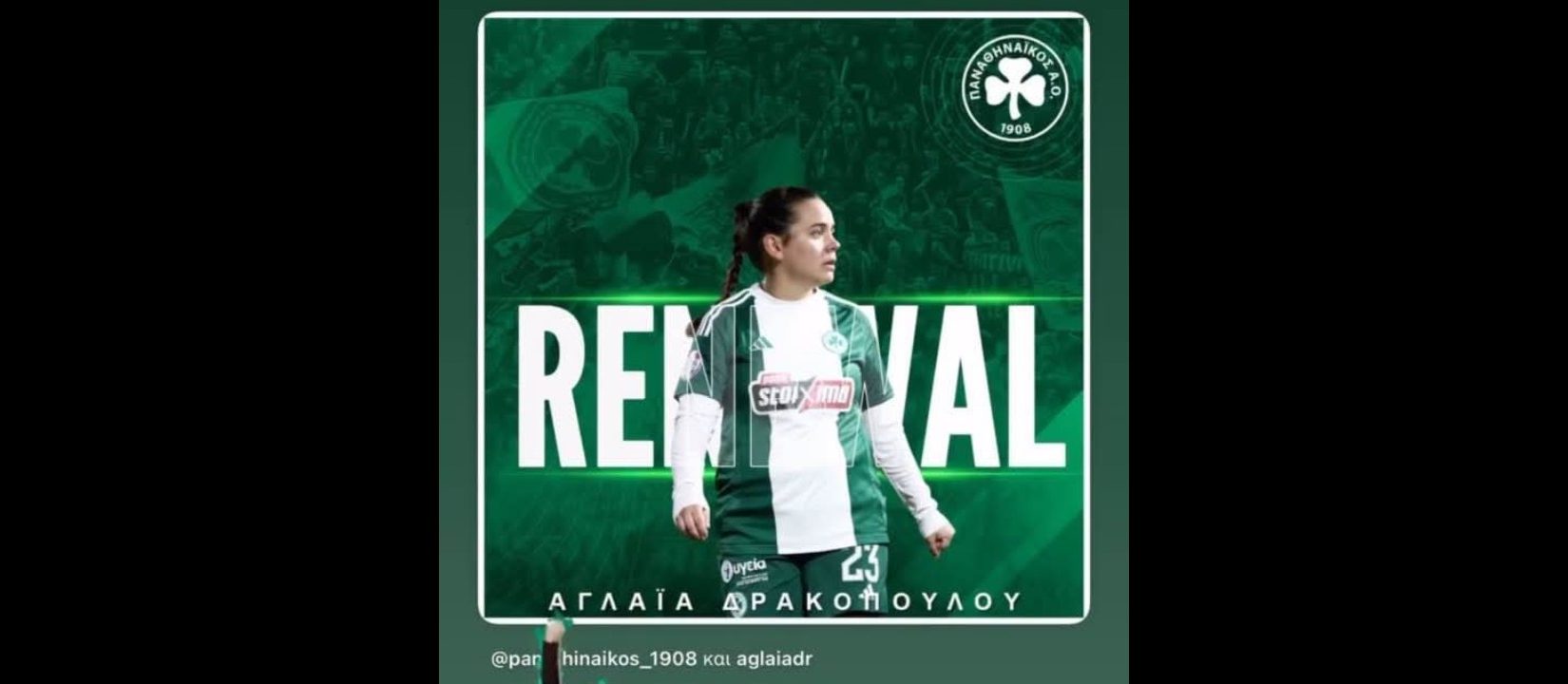 O Παναθηναϊκός Αθλητικός Όμιλος ανακοίνωσε την ανανέωση της συνεργασίας του με την Πυργιώτισσα ποδοσφαιρίστρια Αγλαϊα Δρακοπούλου στο γυναικείο τμήμα Futsal για την αγωνιστική σεζόν 2025-2026. Η Δρακοπούλου ήταν η πρώτη που έδωσε τα χέρια με τον Σύλλογο και θα συνεχίσει να φοράει και φέτος την πράσινη φανέλα.