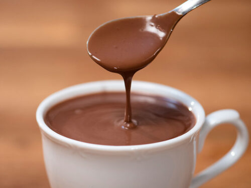 • Σερβίρουμε τη ζεστή σοκολάτα σε φλιτζάνια και απολαμβάνουμε αμέσως.