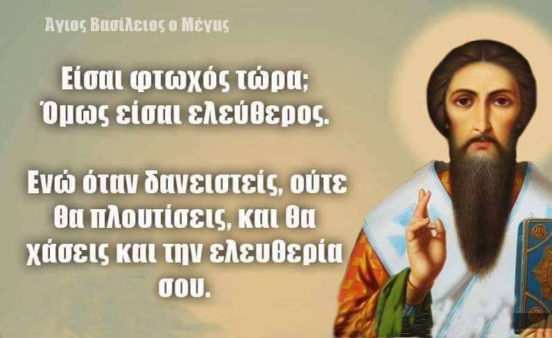 Αυτός ήταν αγαπητοί μας φίλοι και Χριστιανοί μας, ο Άγιος Βασίλειος από την Καισαρεία που πάντα θα ζει μέσα στις καρδιές μας, ο οποίος έφτασε εις τα ύψη της Θείας γνώσεως, του κατά Θεόν πλουτισμού και της θυσιαστικής αγάπης προς τον άνθρωπο. Το δε τεράστιο και Θεάρεστο φιλανθρωπικό, κοινωνικό και συγγραφικό έργο του, μας θυμίζει ότι πρέπει να είμαστε όλοι εμείς οι άνθρωποι μικροί και μεγάλοι ενωμένοι και αγαπημένοι και τώρα μάλιστα, που ζούμε σε καιρούς δύσκολους και χαλεπούς στην Πατρίδα μας, βάζοντας στις καρδιές μας τα δύο υψηλά ιδανικά «Χριστό και Ελλάδα» και μην ξεχνάμε διόλου ότι με πίστη στα ιδανικά αυτά θα περάσουμε τις δυσκολίες από την χρόνια οικονομική, ηθική, πνευματική κρίση και τώρα μάλιστα από την συνεχιζόμενη πανδημία του κορωνοϊού η οποία μαστίζει όχι μόνον την χώρα μας αλλά παγκοσμίως.