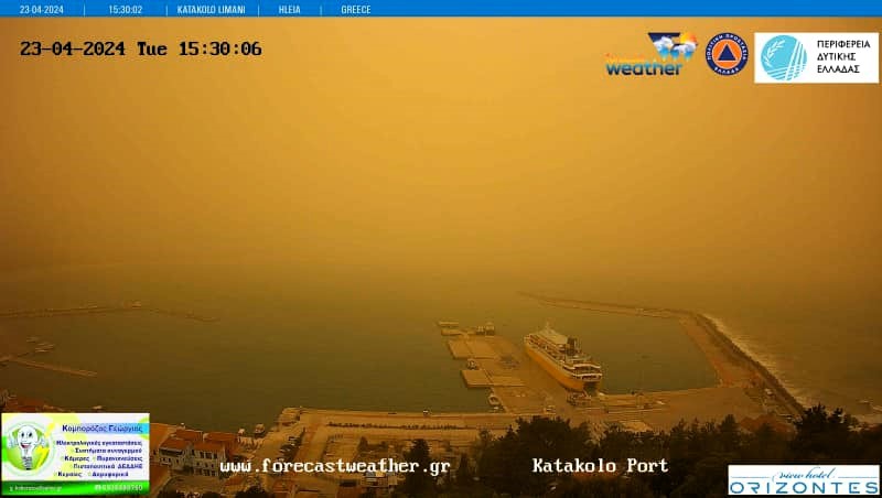 Απόκοσμες εικόνες δημιουργεί η Αφρικανική σκόνη που έχει «πνίξει» την  Ηλεία και ολόκληρη τη χώρα και έχει δημιουργήσει ένα αποπνικτικό σκηνικό.