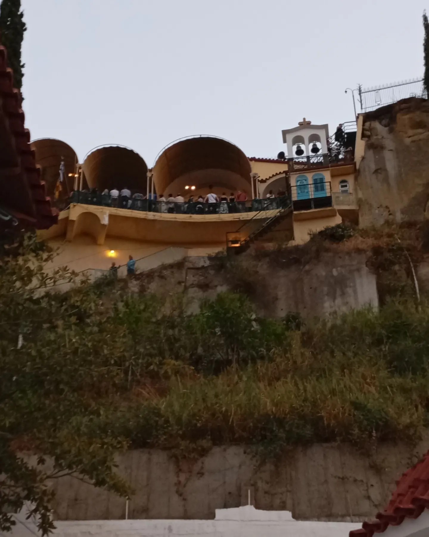 Για τον λόγο αυτό θέλησαν να εξερευνήσουν το συγκεκριμένο σημείο που εκείνη την εποχή ήταν απόκρημνο και δυσπρόσιτο εξαιτίας της απότομης πλαγιάς του βουνού. Αναγκάστηκαν έτσι να κατεβάσουν στο βουνό κάποιον δεμένο με σχοινιά και η ανακάλυψή του ήταν η εικόνα της Παναγία; αιωρούμενη μέσα σ’ ένα σπηλαίο. Αποφασίσθηκε έτσι η προσεκτική μεταφορά της εικόνας σε τόπο ασφαλή και κατάλληλο για την ανέγερση ναού προς τιμήν της (ίσως κοντά στον παρακείμενο οικισμό των βοσκών). Σύντομα η ανέγερση ναού ξεκίνησε όμως η θέληση της Θεοτόκου ήταν διαφορετική. Η εικόνα εξαφανίστηκε ξαφνικά σε μια νύχτα γεμίζοντας με λύπη τους κατοίκους. Η Παναγία όμως έδωσε ξανά το σημάδι της αφού εμφανίστηκε ξανά στο σπηλαίο με την χαρακτηριστική λάμψη. Οι κάτοικοι ξεκίνησαν πάλι για το σπηλαίο, αυτή την φορά όμως κατέβηκαν περισσότεροι, αντικρίζοντας για μία ακόμα φορά την εικόνα να αιωρείται. Τότε ο ιερέας της περιοχής θεώρησε πως αυτό είναι σημάδι της Παναγίας για τον τόπο που εκείνη έχει επιλέξει για να γίνει ο ναός της και για να την τιμούν. Έτσι ξεκίνησαν και οι πρώτες προσπάθειες διαμόρφωσης του σπηλαίου σε τόπο κατάλληλο για προσκύνηση καθώς και κάποιου ασφαλούς μονοπατιού που θα οδηγούσε στο σπήλαιο. Όταν το σπήλαιο ολοκληρώθηκε τελέσθηκε η Θεία Λειτουργία ενώπιον της ιερής εικόνας και από τότε το σημείο αποτελεί τόπο προσκύνησης έως και τις μέρες μας. [1]
