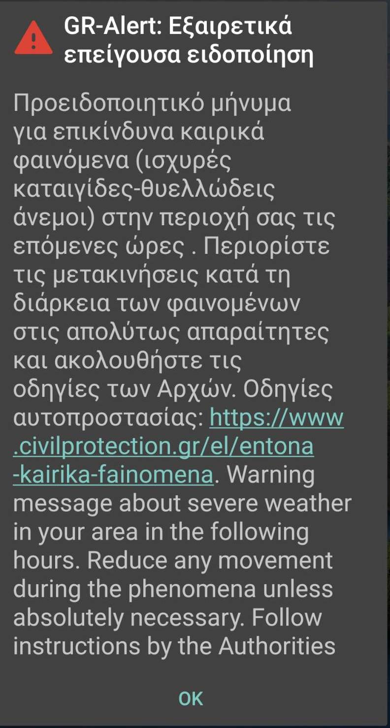 Η Πολιτική Προστασία με μήνυμα στο 112 προειδοποιεί τους κατοίκους της Ηλείας για επικίνδυνα καιρικά φαινόμενα