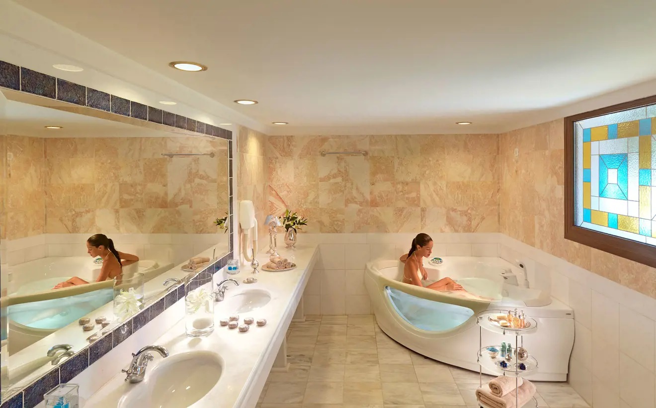 Η σουίτα των 110 τετραγωνικών μπορεί να φιλοξενήσει έως τέσσερα άτομα και κοστίζει 3.000 ευρώ τη βραδιά. Διαθέτει δύο ευρύχωρα υπνοδωμάτια -το ένα με γραφείο-, σαλόνι με τραπεζαρία και δύο πολυτελή μαρμάρινα μπάνια με τζακούζι. Έχει επίσης ιδιωτική πισίνα και μπαλκόνι με θέα στη θάλασσα.Η χολιγουντιανή σταρ, ωστόσο, χρησιμοποίησε και τη δεύτερη προεδρική σουίτα του πολυτελούς ξενοδοχείου, καθώς και δύο μικρότερες, αφού ταξίδεψαν μαζί της στην Ελλάδα και οι δύο γιοι της.