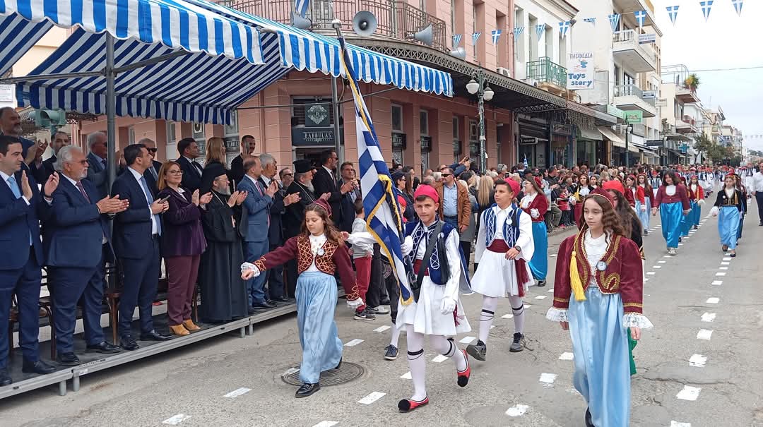Αμέσως μετά πραγματοποιήθηκε η εντυπωσιακή μαθητική παρέλαση, συνοδεία της