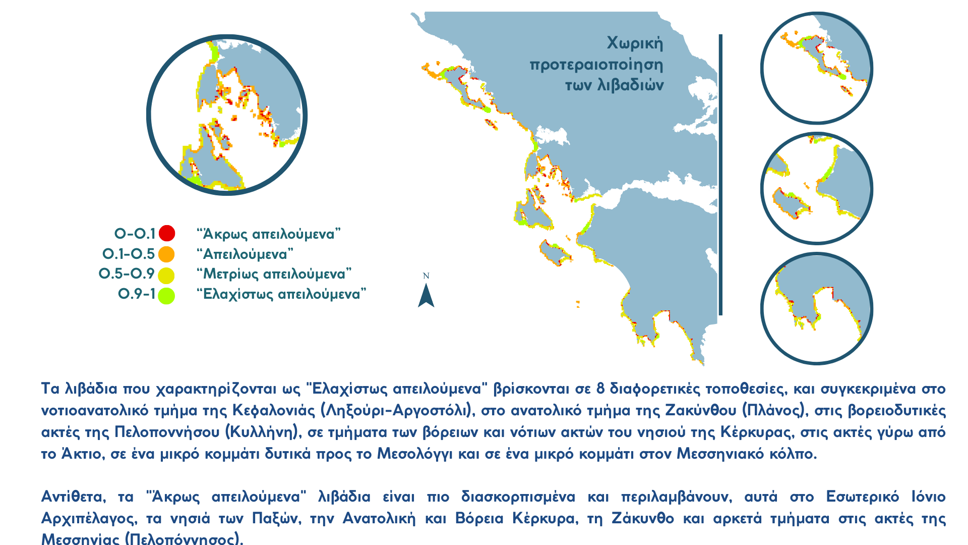 Στην Ηλεία τα λιβάδια αυτά υπάρχουν σε αφθονία και βρίσκονται από τις παραλίες της Βάρδας μέχρι και την Ζαχάρω όπου βοηθούν τα νερά να είναι καθαρά. Κινδυνεύουν όμως από τον ανθρώπινο παράγοντα και τις δραστηριότητές του όπως με τα σκάφη και τις άγκυρες που καταστρέφουν τις ρίζες των φυτών.
