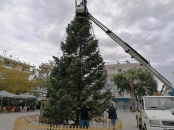 Στην κεντρική πλατεία της πόλης τοποθετήθηκε το Χριστουγεννιάτικο δένδρο από έλατο ύψους 14 μέτρων από το χωριό Πεύκη.