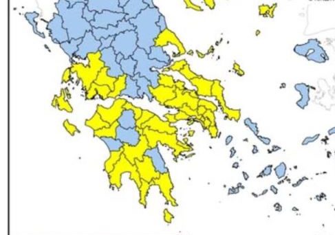 Συγκεκριμένα υψηλός κίνδυνος πυρκαγιάς (κατηγορία κινδύνου 3) προβλέπεται τη σήμερα για τις εξής περιοχές: