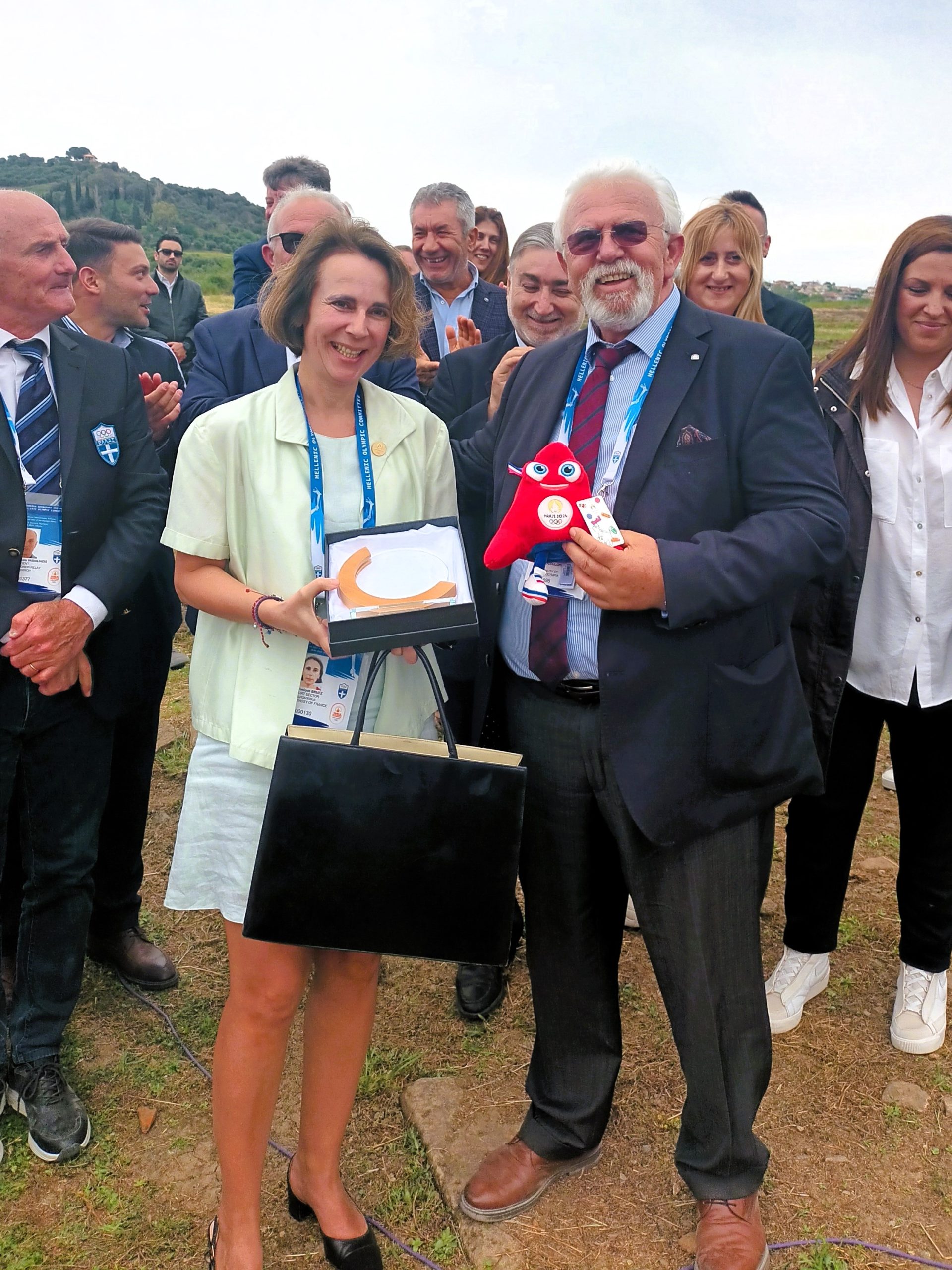 Ο Δήμαρχος Ήλιδας κ. Χρήστος Χριστοδουλόπουλος ως οικοδεσπότης, υποδέχτηκε με τις τιμές που αρμόζουν τη ιερή φλόγα και καλωσόρισε στην Αρχαία Ήλιδα την εκπρόσωπο της Οργανωτικής Επιτροπής «ΠΑΡΙΣΙ 2024» και μορφωτική ακόλουθο για θέματα Αθλητισμού της Γαλλικής πρεσβείας κα Véronique Bruez, αλλά και τον πρόεδρο της Επιτροπής Ολυμπιακής Λαμπαδηδρομίας και μέλος της Ελληνικής Ολυμπιακής Επιτροπής κ. Θανάση Βασιλειάδη.