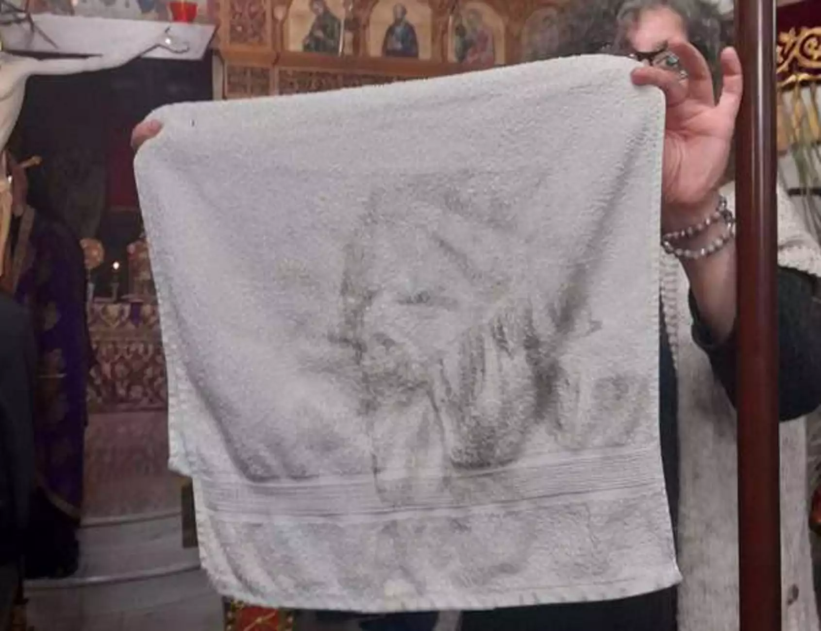 Όταν στέγνωσε η πετσέτα εμφανίστηκε αυτή η μορφή της φωτογραφίας, η οποία όπως τονίζουν πιστοί και ιερείς απεικονίζει τον Ιωάννη Βαπτιστή. Ο Τίμιος Πρόδρομος που με τη διδασκαλία Του προετοίμασε τον κόσμο να υποδεχθεί τον Μεσσία Ιησού.