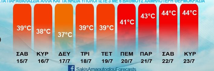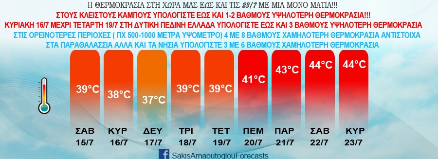 Η θερμοκρασία ΕΩΣ ΚΑΙ ΤΙΣ 23 ΙΟΥΛΙΟΥ με μια μόνο ματιά!