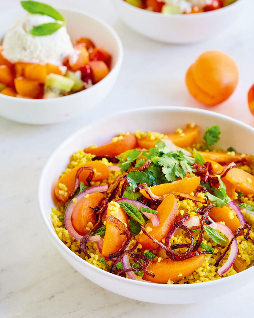 Σαλάτα με κουσκούς, βερίκοκα και καραμελωμένα κρεμμύδια