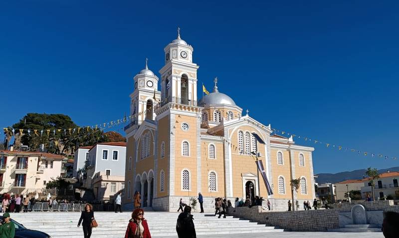 Προηγήθηκε Πολυαρχιερατικό Συλλείτουργο στον μητροπολιτικό ναό της Υπαπαντής του Χριστού, όπου συμμετείχαν οι μητροπολίτες Ύδρας, Σπετσών και Αιγίνης Εφραίμ, Κέρκυρας Νεκτάριος, Καρθαγένης Μελέτιος, Παραμυθιάς, Φιλιατών, Γηρομερίου και Πάργας Σεραπίων, Μαντινείας και Κυνουρίας Επιφάνιος, Αχαρνών και Πετρουπόλεως Αθηναγόρας, Σταγών και Μετεώρων Θεόκλητος, Μεγάρων και Σαλαμίνος Κωνσταντίνος, Μεσσηνίας Χρυσόστομος και ο επίσκοπος Τανάγρας Απόστολος.