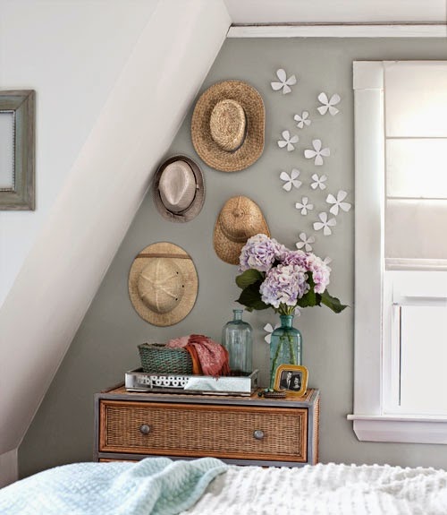 Οι υπόλοιποι προμηθευτείτε ψάθινα καπέλα σε διαφορετικά σχέδια και χρησιμοποιήστε τα είτε μεμονωμένα είτε αρκετά μαζί για διακοσμητικές συνθέσεις τοίχου.