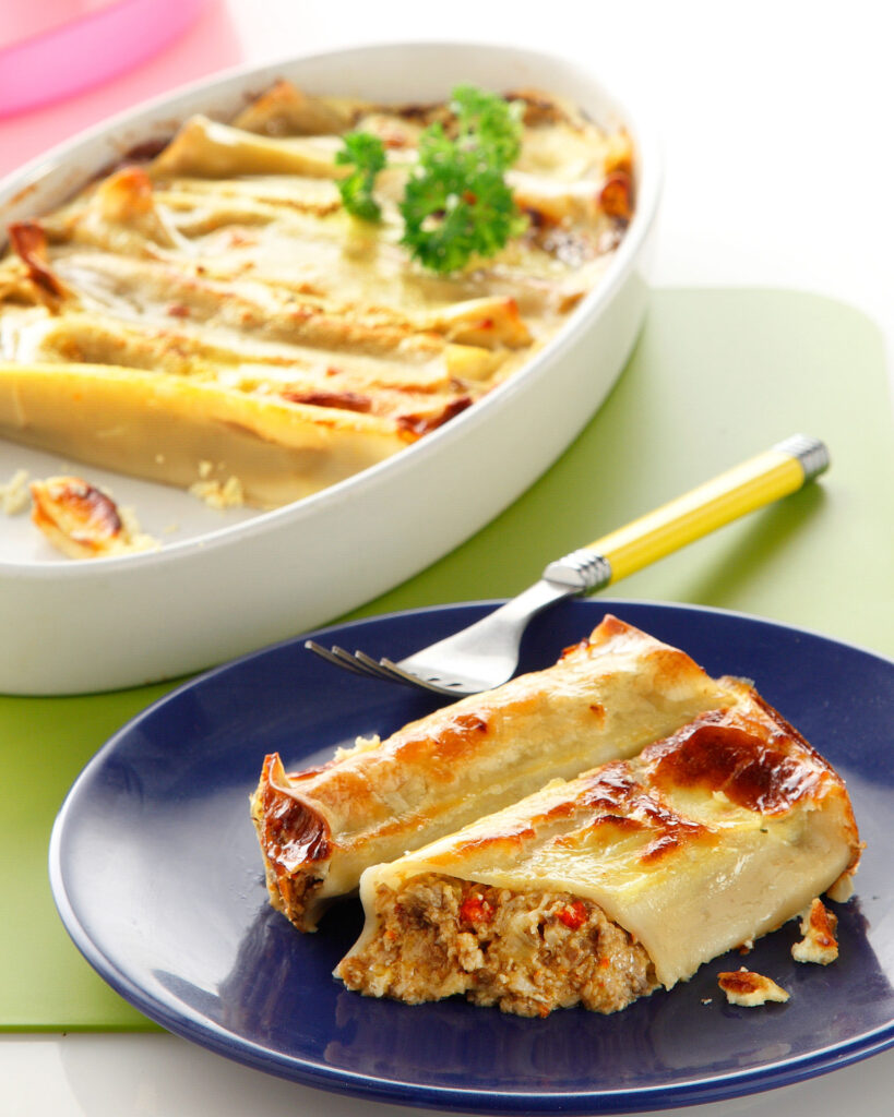 - Σκορπίζουμε τη γραβιέρα και ψήνουμε τα κανελόνια για περίπου 45 λεπτά, μέχρι να μαλακώσουν τα ζυμαρικά, να απορροφήσουν τα υγρά και να ροδίσουν στην επιφάνεια.