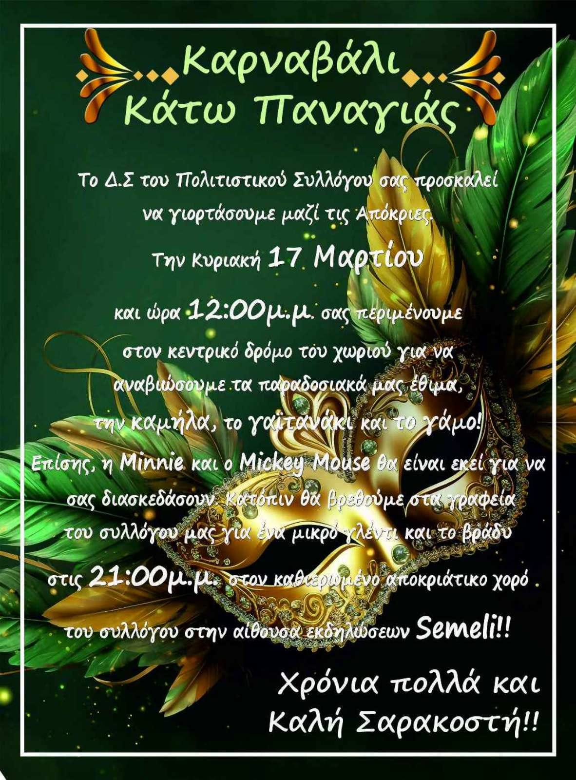 του χωριού διοργανώνει αποκριάτικο χορό στο κέντρο Semeli.
