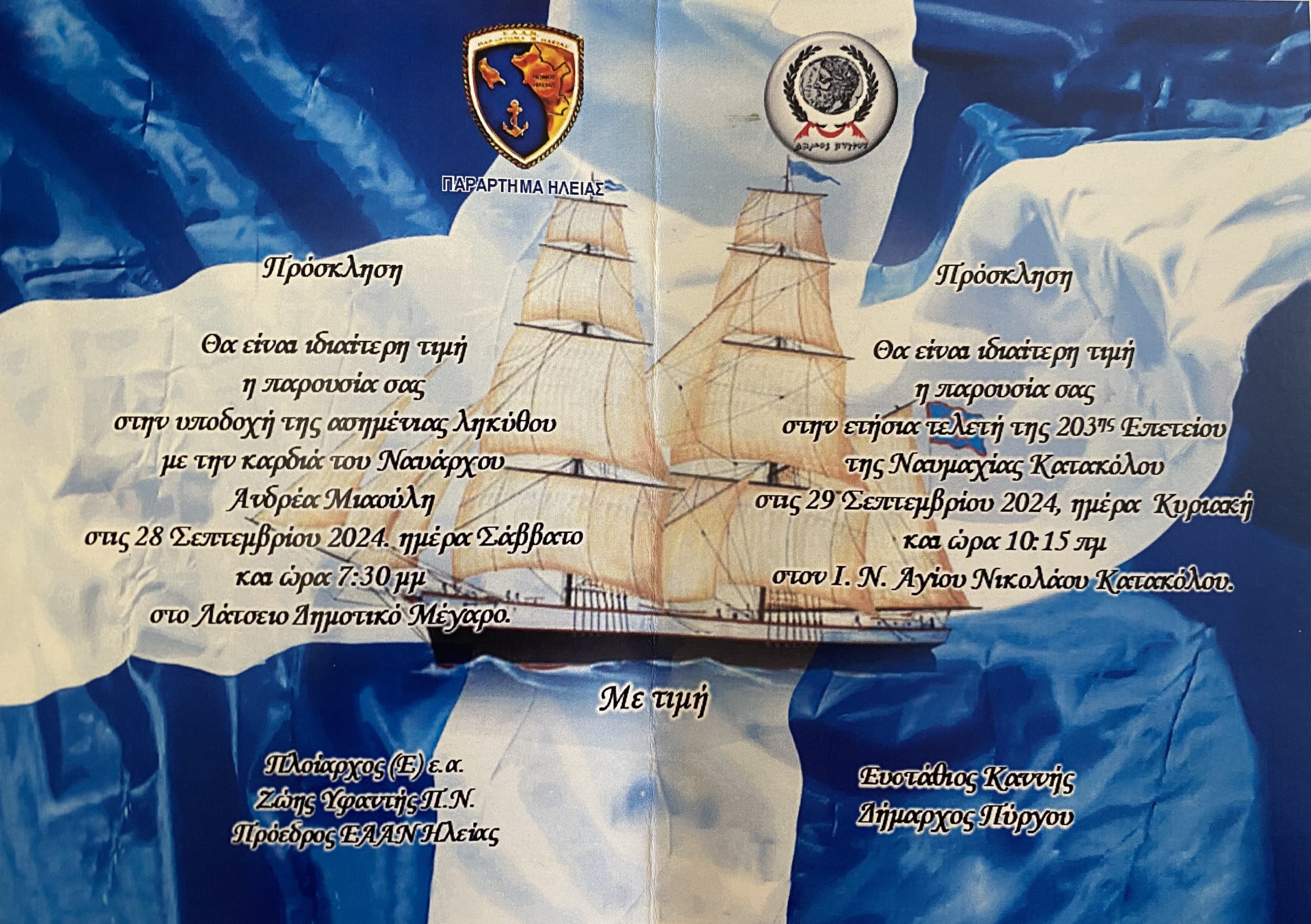 διήμερες εκδηλώσεις σε Πύργο και Κατάκολο για να τιμήσουμε τον μεγάλο θαλασσομάχο