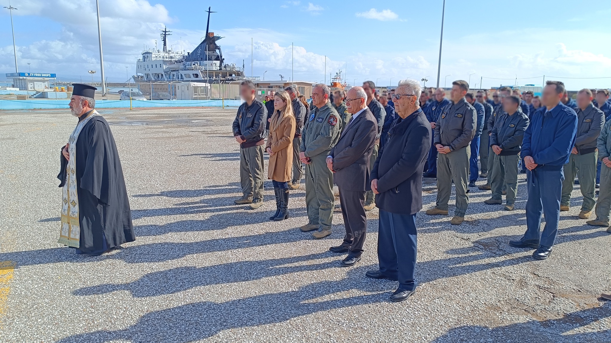 Παρών επίσης και ο Πρόεδρος του Λιμενικού Ταμείου Πύργου, Κωνσταντίνος Νικολούτσος, καθώς επίσης αρκετοί πιλότοι, αξιωματικοί και στελέχη της 117 Π.Μ.