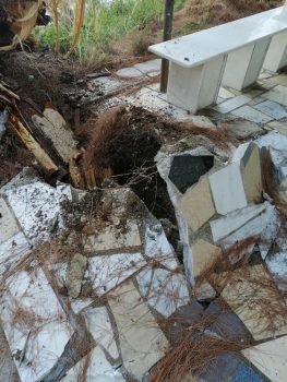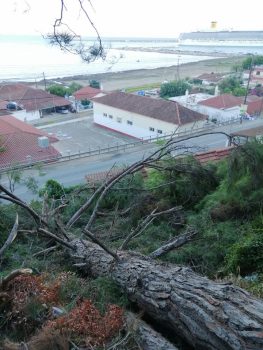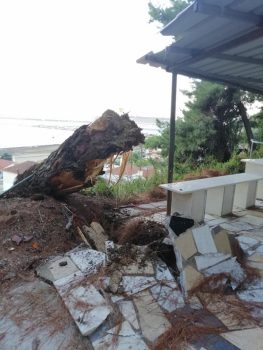 Η κακοκαιρία ΄΄Αθηνά΄΄ βρίσκεται στην Ηλεία από προχτές το βράδυ έχει δημιουργήσει μικροπροβλήματα κατά τόπους. Στο Κατάκολο τη νύχτα δυνατός αέρας πέρασε και έκανε ζημιά στο νεκροταφείο του χωριού που βρίσκεται στην πλαγιά του δάσους πάνω από το Δημοτικό Σχολείο. Η μανία του ανέμου ξερίζωσε ένα τεράστιο πεύκο πολλών ετών που βρισκόταν στην είσοδο του κοιμητηρίου στο κιόσκι που υπάρχει εκεί. Το πεύκο έπεσε από κάτω προς την μεριά του δρόμου και ευτυχώς που εκείνη την ώρα δεν κυκλοφορούσε αυτοκίνητο. Δίπλα στο σημείο που κατέληξε το δέντρο υπάρχει σπίτι που ευτυχώς δεν κατοικείται μόνιμα. Για λίγα μέτρα γλίτωσε την καταστροφή το σπίτι. Οι πλάκες από το δάπεδο στο σημείο έσπασαν και ο αέρας το έριξε σε σημείο όπου δεν υπάρχουν τάφοι αλλιώς το πρόβλημα θα ήταν μεγαλύτερο.
