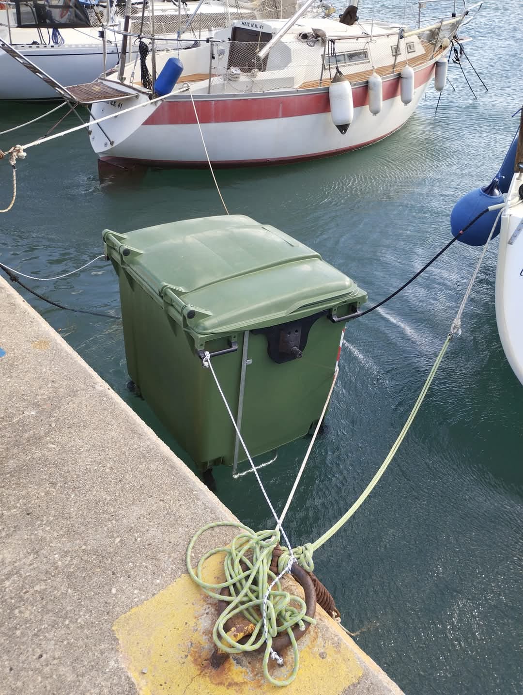 Ο Δήμαρχος και ο αρμόδιος Αντιδήμαρχος Καθαριότητας μήπως θα πρέπει να διερευνήσουν το θέμα και μέσω των καμερών του λιμανιού να δουν πως ο κάδος βρέθηκε στην θάλασσα δεμένος;