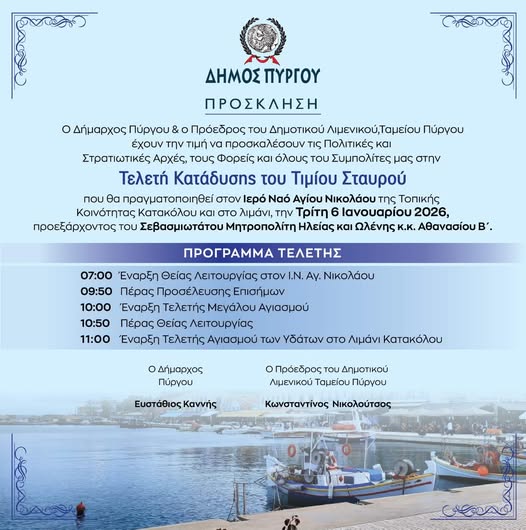 ΚΑΤΑΚΟΛΟ: Πρόγραμμα Τελετής Κατάδυσης του Τιμίου Σταυρού