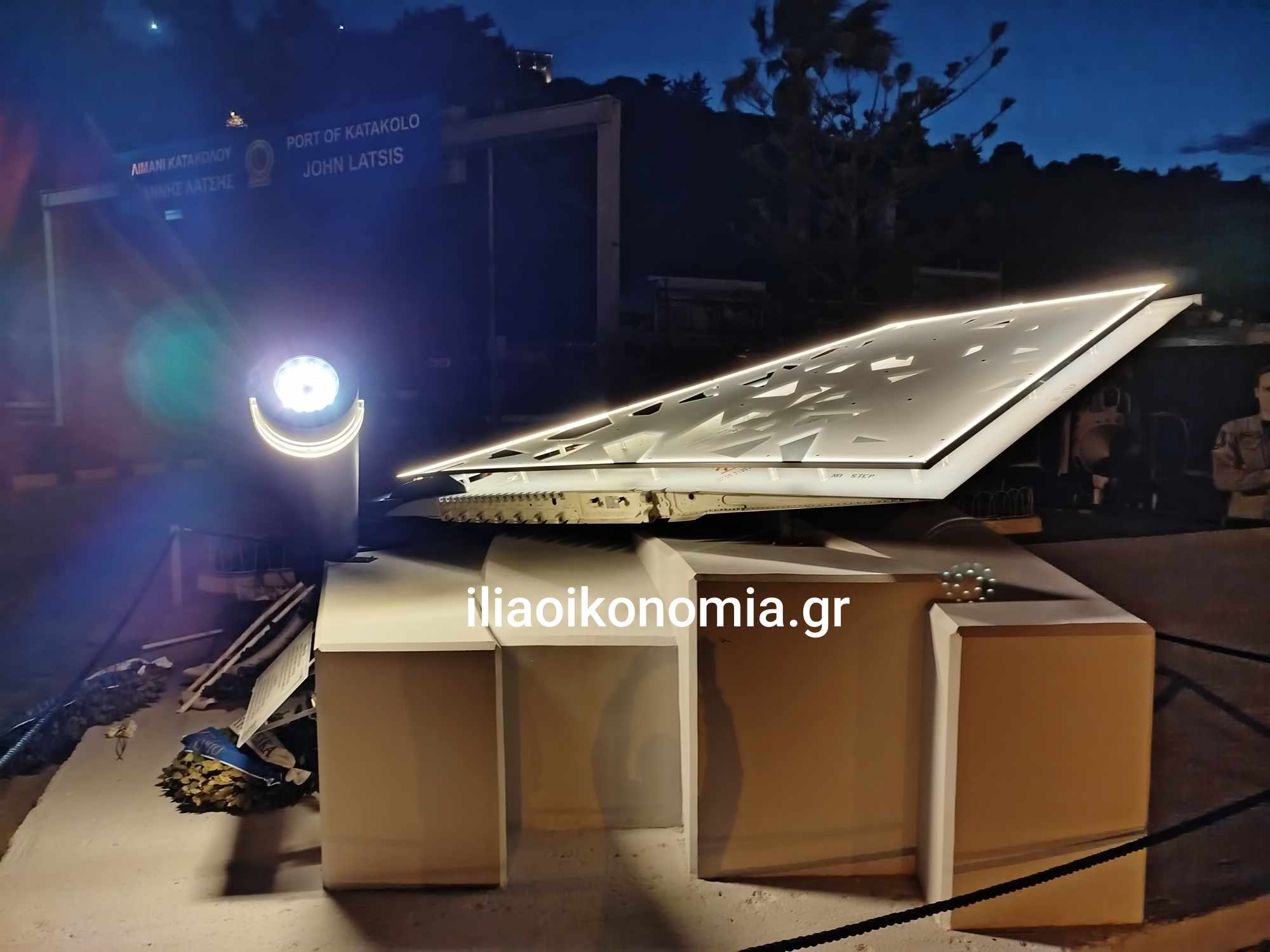Πλήθος κόσμου συρρέει στο λιμάνι Κατακόλου τις τελευταίες ημέρες για να δει από κοντά το εντυπωσιακό μνημείο που έφτιαξαν προς τιμήν των δύο αδικοχαμένων ηρώων, Τσιτλακίδη και Τουρούτσικα, που σκοτώθηκαν με το μαχητικό αεροσκάφος προ δύο ετών. Το μνημείο την ημέρα είναι ένα εντυπωσιακό μοντέρνο γλυπτό ως φόρος τιμής αλλά το βράδυ παίρνει μια άλλη μορφή….πιο συγκινητική καθώς φωτίζεται με ειδικά φώτα και δίνει έναν άλλο τόνο…μια βαριά ατμόσφαιρα.