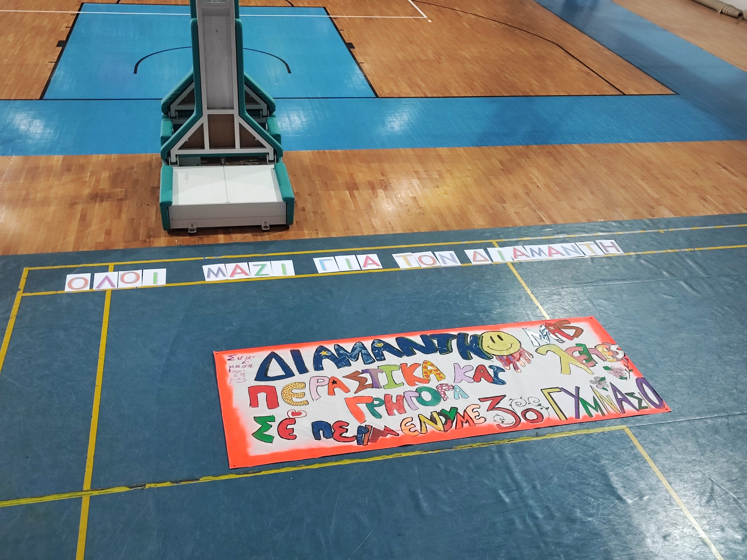 Κατά την έναρξη του παιχνιδιού, οι παίκτριες των δύο ομάδων σήκωσαν πανό, το οποίο είχαν επιμεληθεί οι μαθητές του 3ου Γυμνασίου Πύργου, αλλά και πλακάτ τα οποία σχημάτιζαν τη φράση «Όλοι μαζί για τον Διαμαντή». Ο Πυργέας ως τυπικά γηπεδούχος, κατέκτησε μόνο το πρώτο σετ, ενώ στη συνέχεια η καλά φορμαρισμένη ομάδα της ΓΕΠ Πύργου, δεν άφησε πολλά περιθώρια στους γηπεδούχους και επικράτησε με 1-3 σετ. Ειδικότερα τα σετ, ΠΥΡΓΕΑΣ – ΓΕΠ ΠΥΡΓΟΥ εξελίχθηκαν ως εξής: