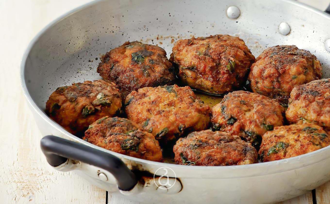 Πλάθουμε περίπου 45-50 κεφτέδες και τους βάζουμε σε ένα ταψί. Σε ένα ρηχό πιάτο βάζουμε αρκετό αλεύρι και πανάρουμε τους κεφτέδες.Ρίχνουμε αρκετό ελαιόλαδο σε ένα αντικολλητικό τηγάνι και το ζεσταίνουμε σε δυνατή φωτιά.