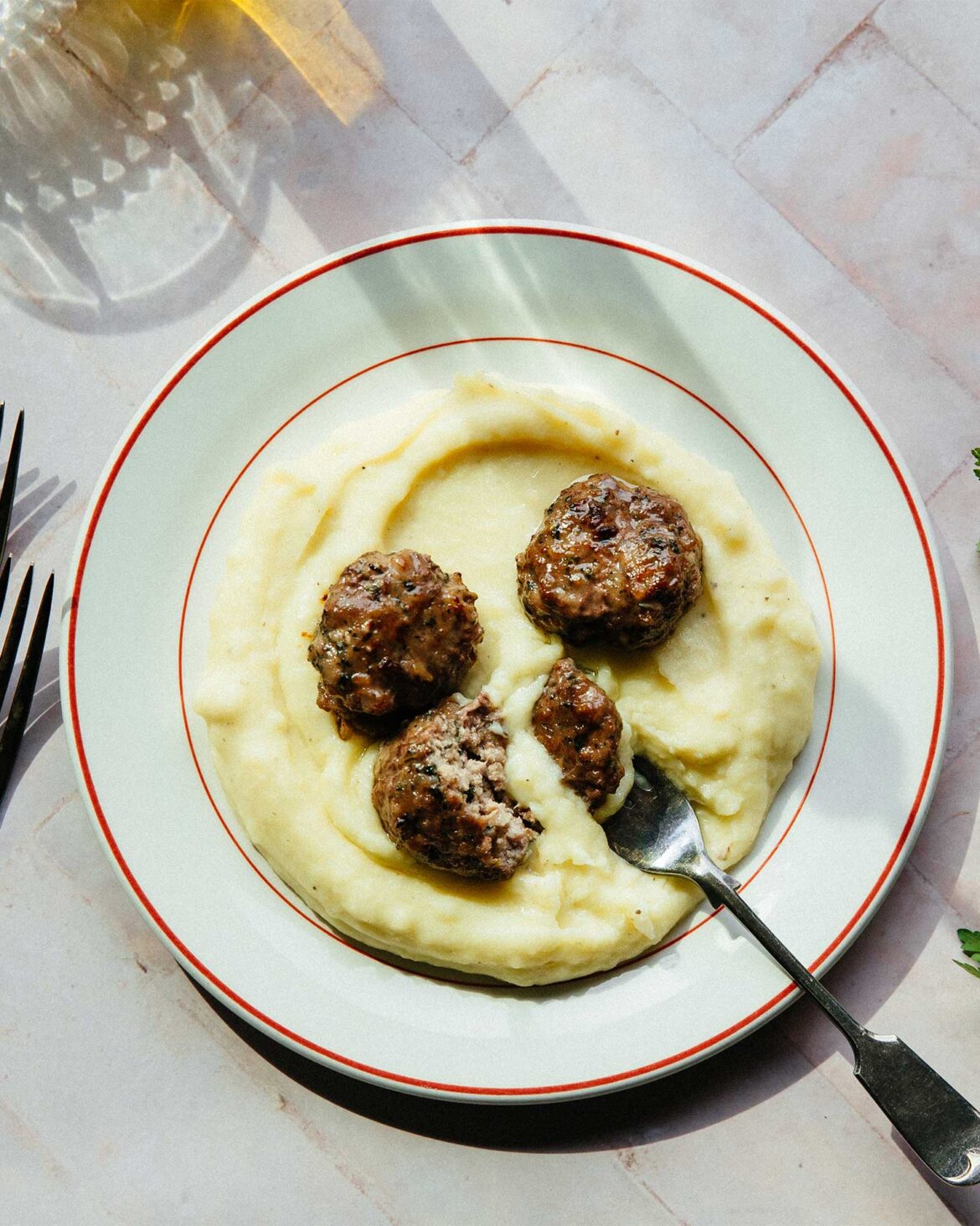 - Πλάθουμε κεφτέδες των 50 γρ. περίπου και τους πιέζουμε να γίνουν ελαφρώς πλακέ.