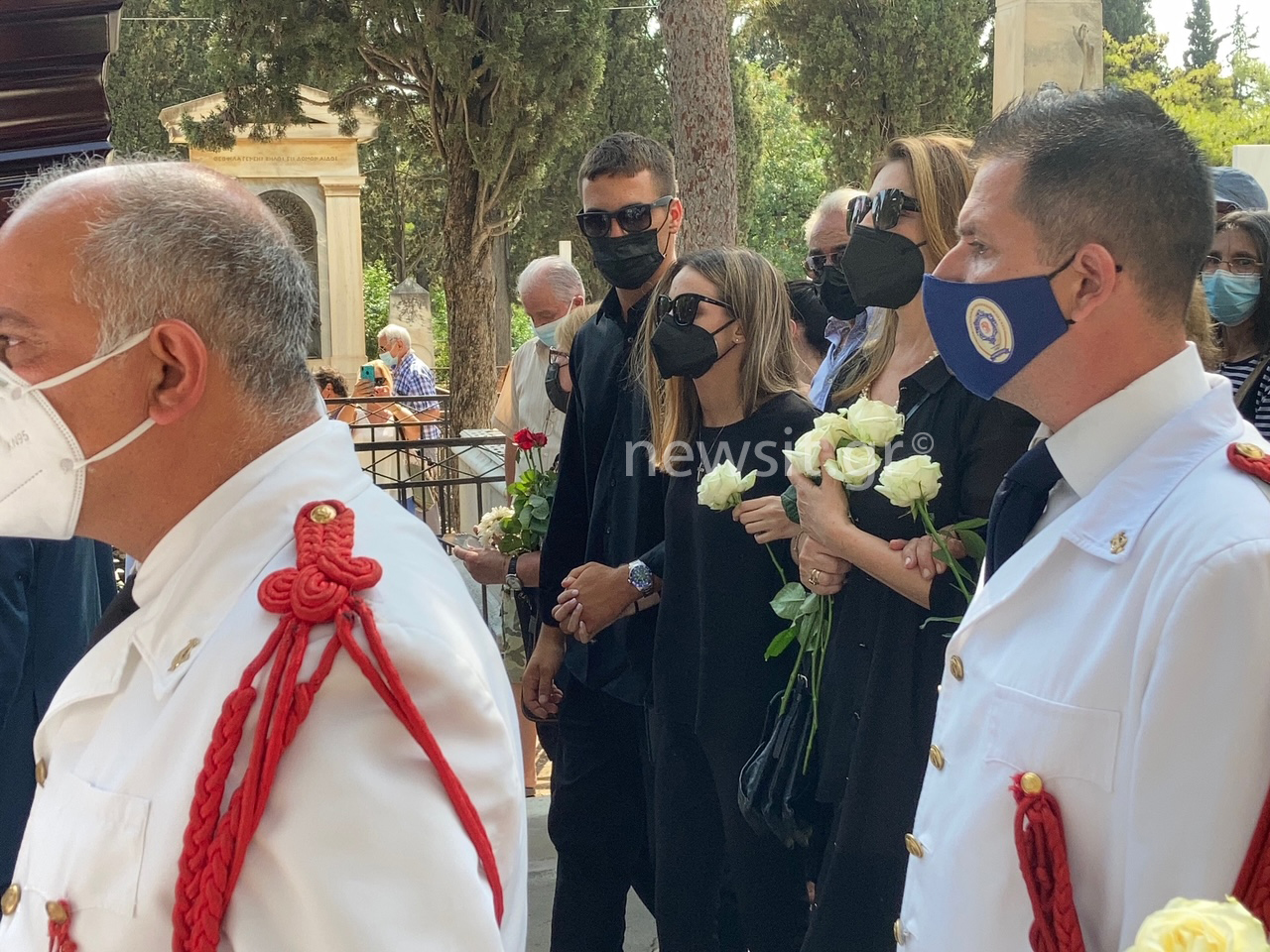 Η Άντζελα Γκερέκου και η κόρη της, Μαρία, έφτασαν στο Α’ Νεκροταφείο λίγο πριν από τις 14:00. Ήταν συνεχώς δίπλα στην κόρη της, πιασμένες χέρι χέρι, στήριγμα η μια για την άλλη. Στο βλέμμα της συζύγου του Τόλη Βοσκόπουλου αποτύπωνε τη θλίψη για το χαμό του.