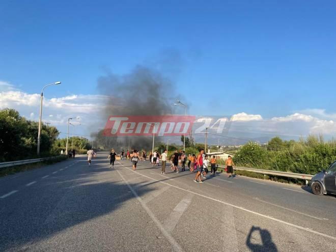 Μετά τις 17.00 το απόγευμα, δεκάδες Ρομά άρχισαν να συγκεντρώνονται στο ύψος της πρώτης διασταύρωσης για Κάτω Αχαΐα και στη συνέχεια έκλεισαν τον δρόμο, καίγοντας λάστιχα.