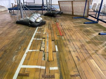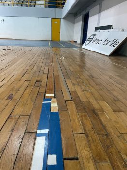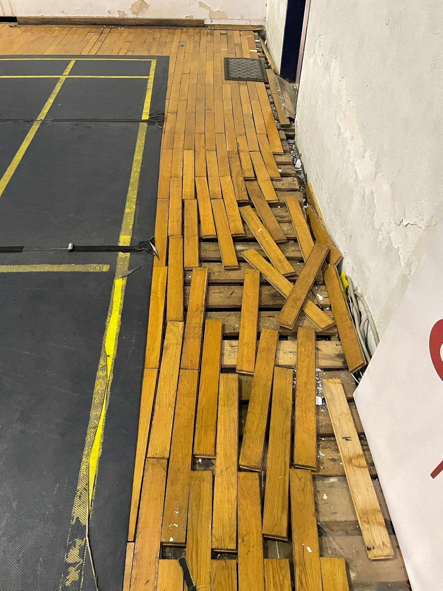 Το γεγονός είναι ότι το δάπεδο εμφανίζει πτυχώσεις, ταλαντεύεται σε μεγάλο βαθμό , ενώ τα κενά και τα ξύλα που εξέχουν στις άκρες εμφανίζονται και στον κυρίως αγωνιστικό χώρο.