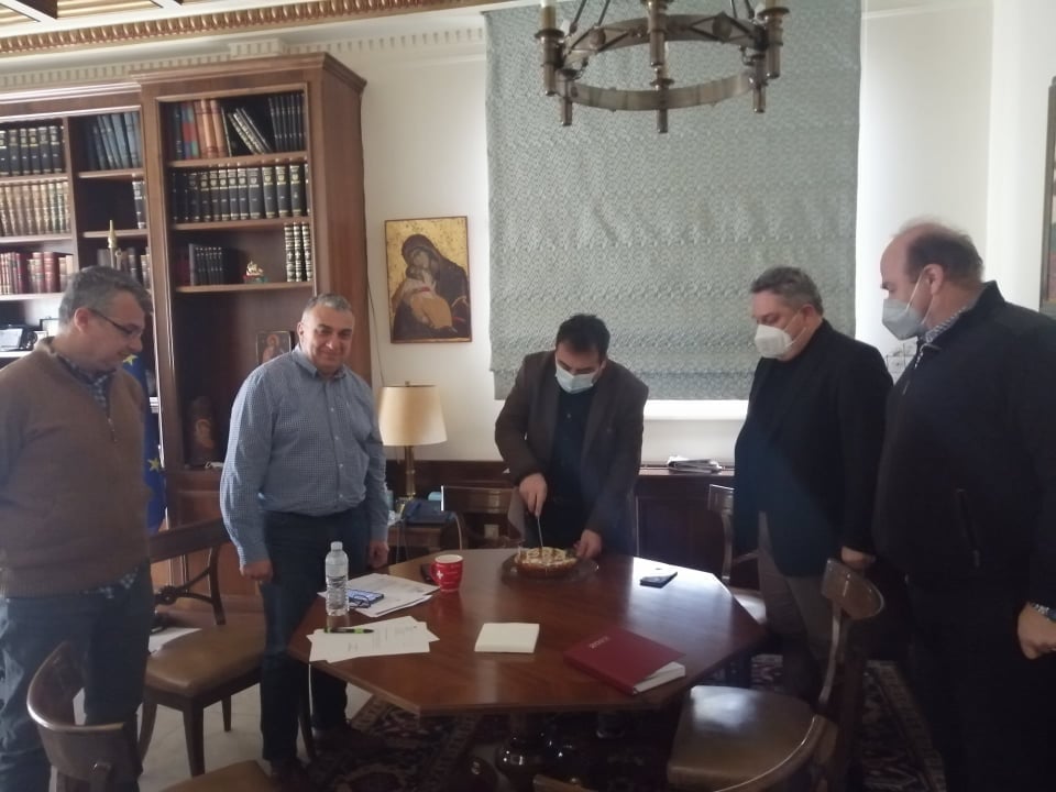 Όπως αναφέρει η ανακοίνωση, κόπηκε μια μικρή στο γραφείο του κ. Δημάρχου, για τους άμεσους συνεργάτες τους και μια μεγάλη για όλους τους υπαλλήλους του Δήμου στην αίθουσα του Δημοτικού Συμβουλίου όπου τα κομμάτια της μοιράστηκαν στους συναδέλφους.