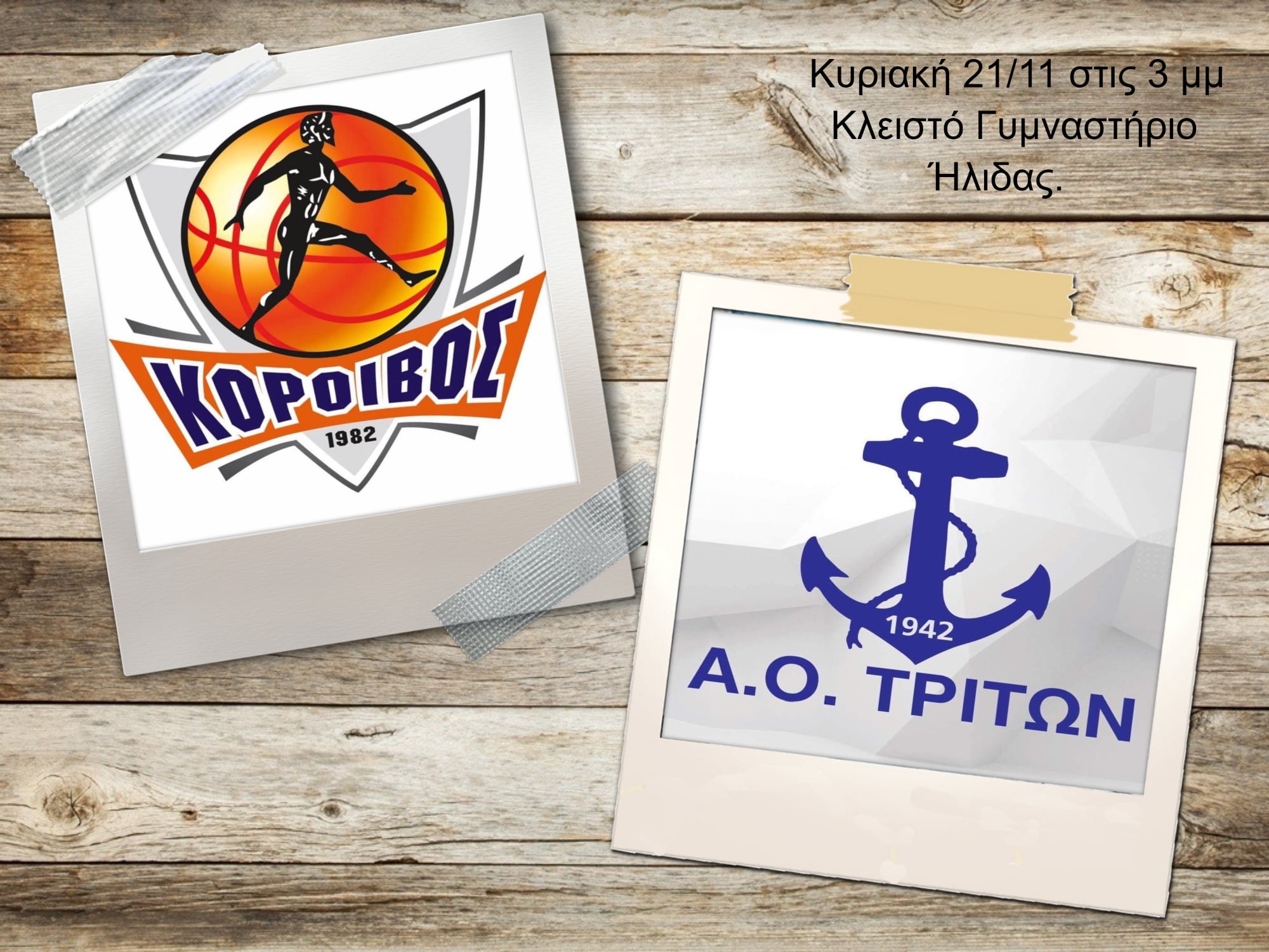 Ο Τρίτων είναι μαζί με την Καρδίτσα τα φαβορί για την άνοδο στην Basket League, και διαθέτει σπουδαίους για την κατηγορία παίκτες όπως, ο Λουκάς Μαυροκεφαλίδης, ο Απόλλων Τσόχλας, κι ακόμα είναι στη φετινή ομάδα ο Γιάννης Δημάκος, ο Πέτρος Μελισσαράτος, ο Τάσος Αντωνάκης, ο Σέρβος γκαρντ Νεμάνια Μανόλοβιτς, κι άλλοι. Ο Κόροιβος από την άλλη είναι και αυτός πολύ αξιόμαχος όπως έχει δείξει μέχρι τώρα, κι ακόμα πιο ισχυρός στην έδρα του, όπου με την συμπαράσταση των φιλάθλων του, μπορεί να κερδίσει κάθε αντίπαλο.