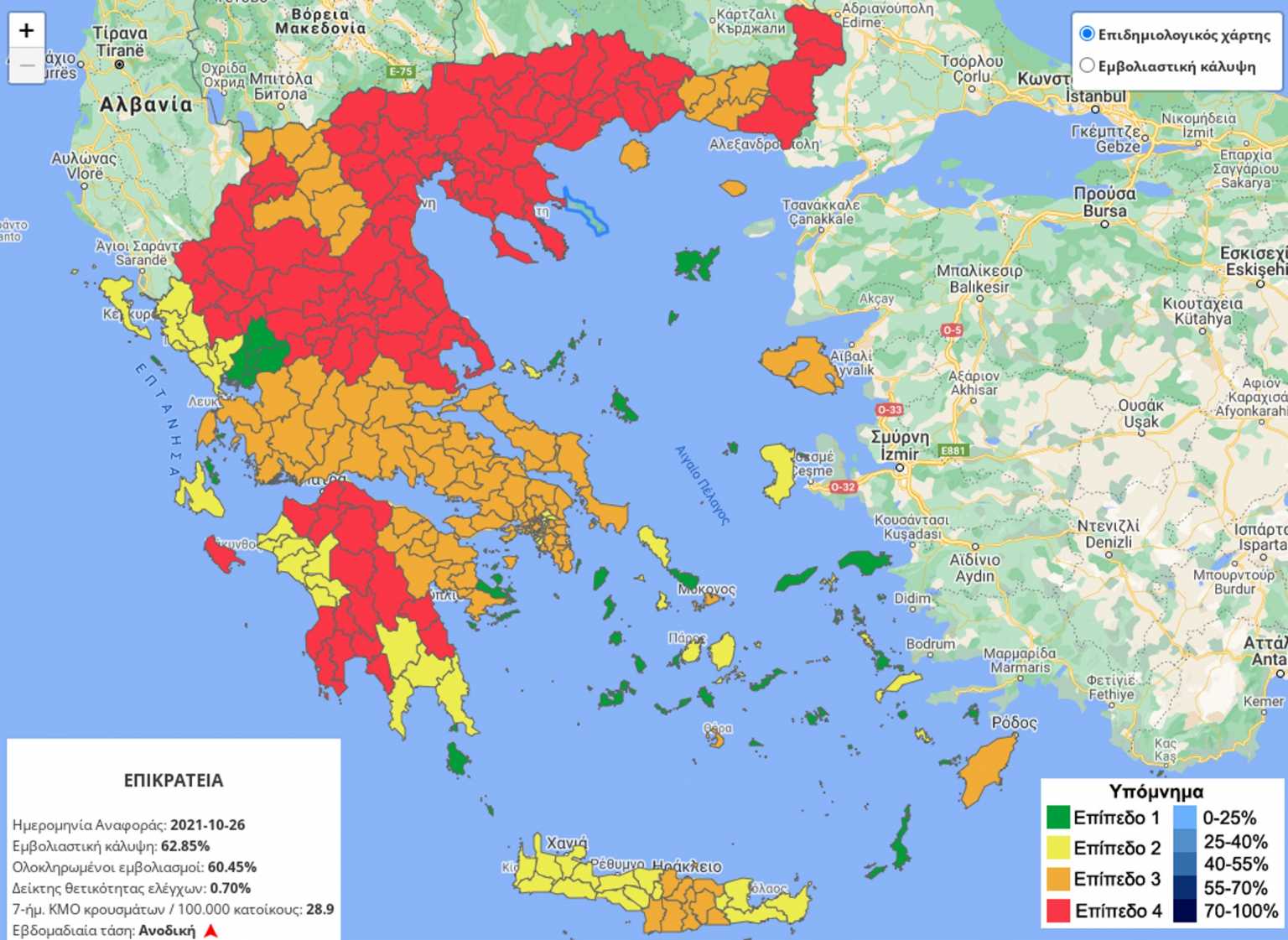 Στο “κίτρινο” (επίπεδο 2) παραμένει η Ηλεία και στο νέο επιδημιολογικό χάρτη, ενώ στο «κόκκινο» μπήκαν μεταξύ άλλων, Αρκαδία, Αχαΐα, Μεσσηνία, Ζάκυνθος.