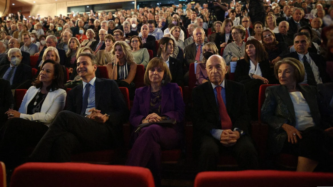 «Ο πρωθυπουργός είναι εδώ με μας» είπε ο Κώστας Σημίτης για τον Κυριάκο Μητσοτάκη που καταχειροκροτήθηκε – Παρόντες η Πρόεδρος της Δημοκρατίας Κατερίνα Σακελλαροπούλου, υπουργοί, βουλευτές, ακαδημαϊκοί – Προβλήθηκαν χαιρετισμοί των Μπιλ Κλίντον, Ζακ Ντελόρ, Ζαν Κλοντ Γιούνκερ, Ρομάνο Πρόντι.