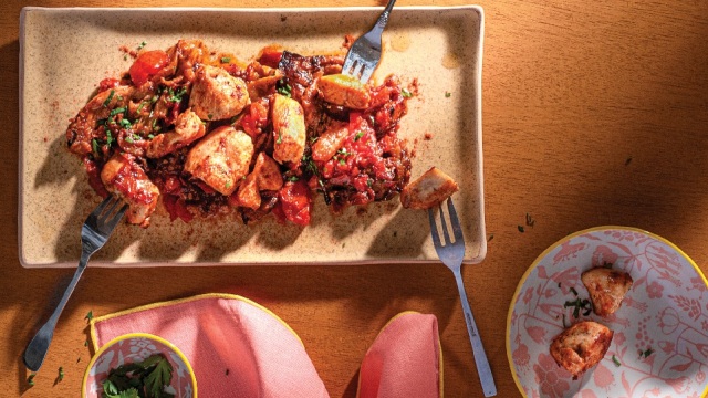 Φτιάξτε αυτό το μεζεδάκι με τις κοτομπουκιές, που γίνεται πιο ιδιαίτερο με τη συνοδευτική του μελιτζανοσαλάτα, σερβίρετέ το ζεστό και βάλτε το στη μέση να τσιμπολογήσει όλη η παρέα μαζί με κρύα μπίρα. Ιδανικό για ένα πρόχειρο κάλεσμα με φίλους στο σπίτι.