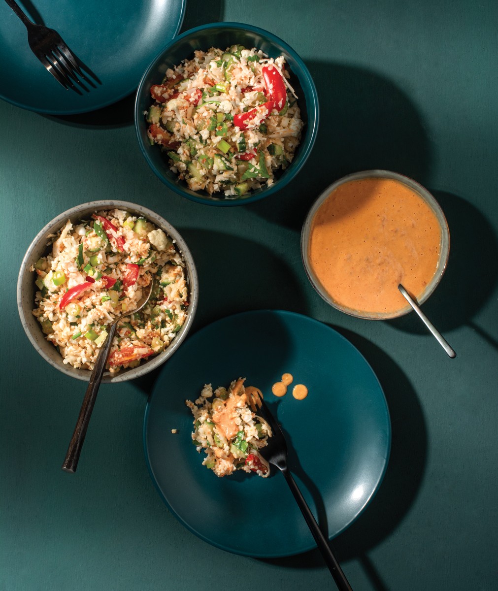 Kουνουπίδι «ταμπουλέ» με πρασινάδες και βινεγκρέτ λιαστής ντομάτας