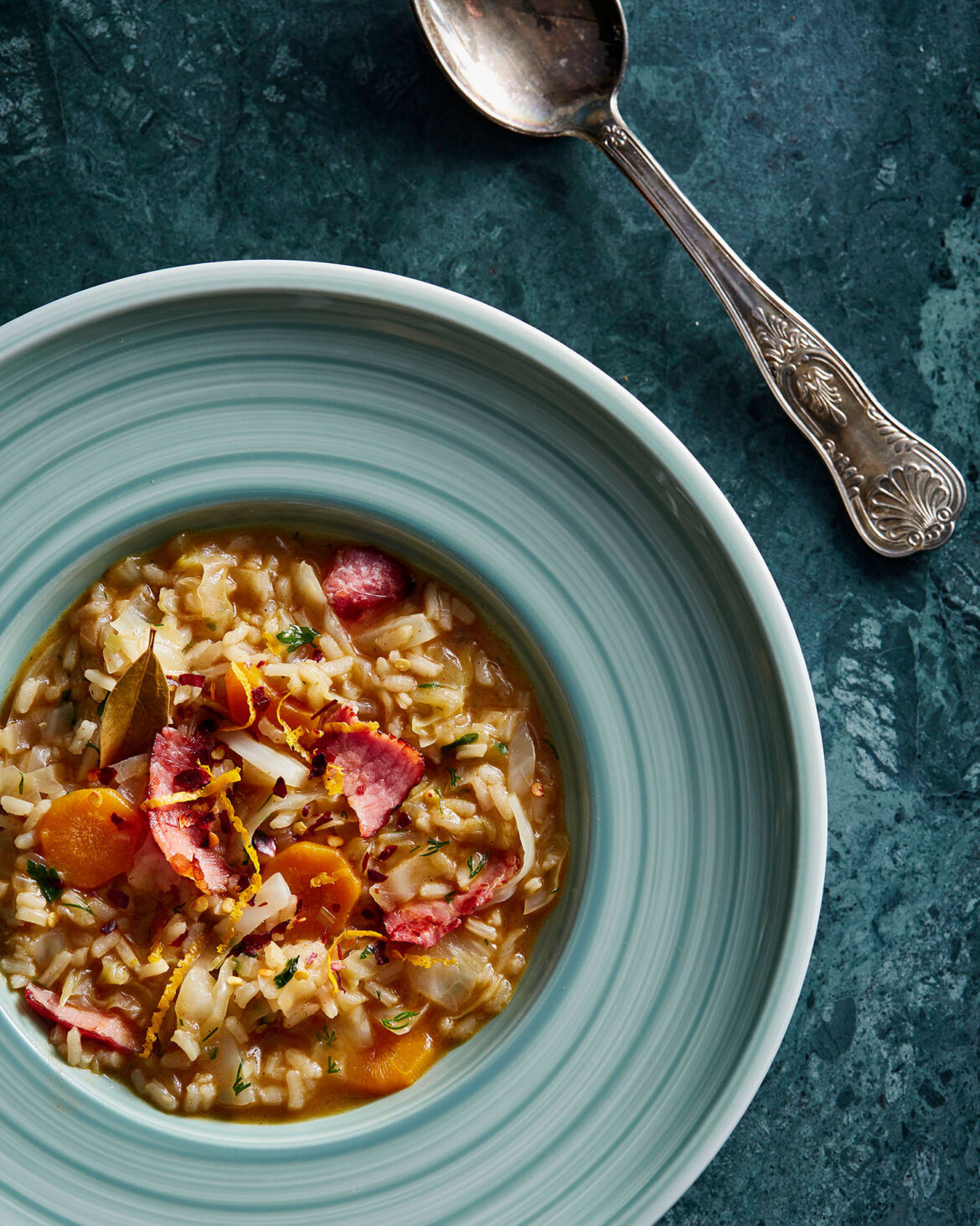 - Ρίχνουμε λίγο ακόμη ζεστό ζωμό και βράζουμε για 10-15 λεπτά ή μέχρι να γίνει το ρύζι. Αν χρειαστεί, συμπληρώνουμε με λίγο ακόμη ζωμό.