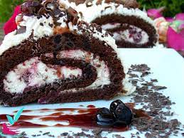 Γέμιση: Χτυπάμε με μίξερ την άχνη ζάχαρη με την κρέμα γάλακτος μέχρι γίνει πηχτή σαντιγί. Απλώνουμε τη σαντιγί πάνω από το παντεσπάνι (φροντίζουμε να είναι κρύο) και μετά απλώνουμε λίγη γέμιση από τα κεράσια. Τυλίγουμε προσεκτικά από άκρη σε άκρη και κρατάμε στο ψυγείο για 2 ώρες. Πασπαλίζουμε με κακάο ή άχνη ζάχαρη και σερβίρουμε κομμένο σε φέτες.