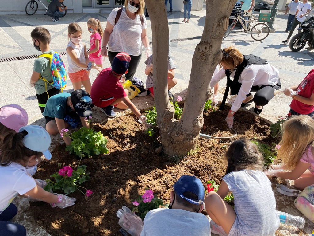 λουλουδιών και εξωραϊσμού σημείων της πόλης από τους μικρούς μας μαθητές .