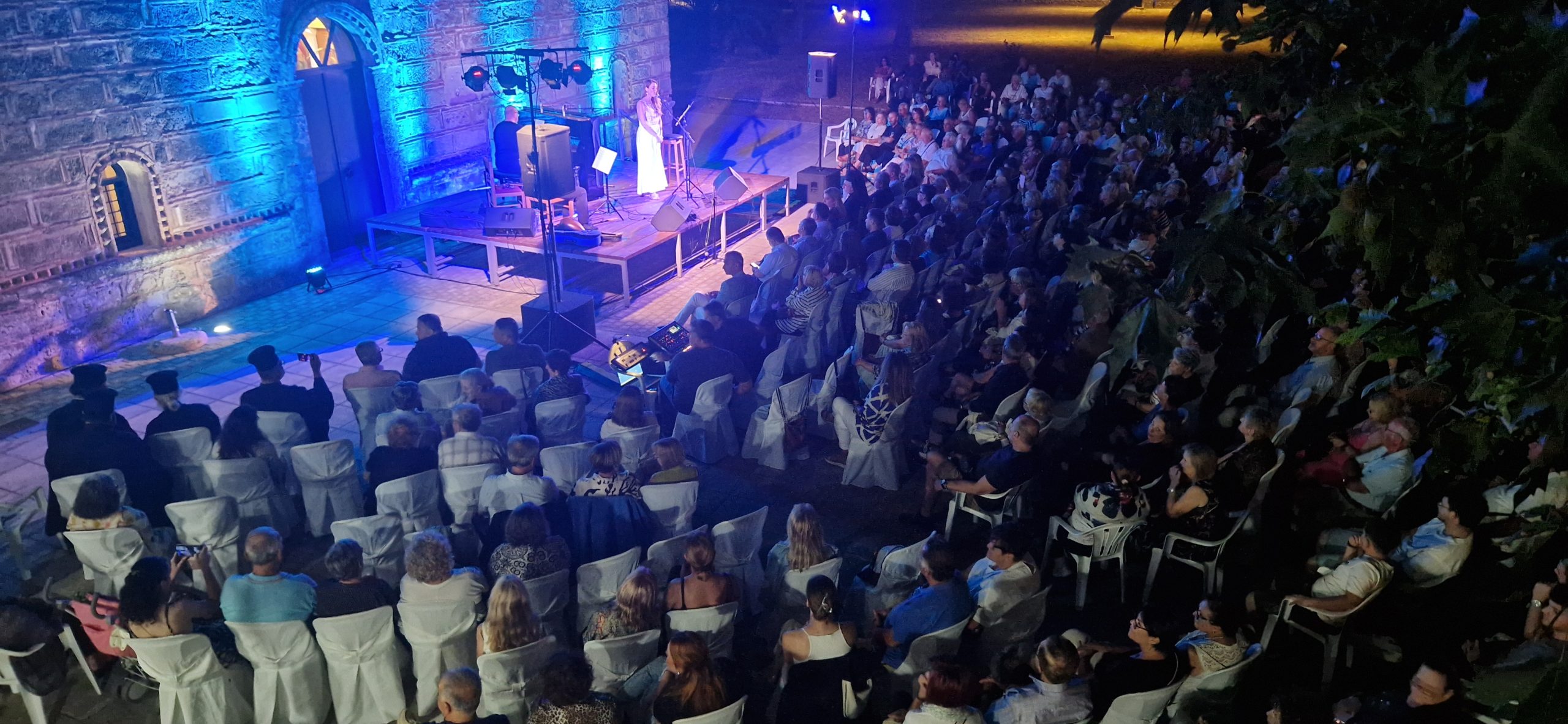 Το επιβλητικό και υποβλητικό σκηνικό του προαυλίου χώρου της Παναγίας Καθολικής, κάτω από τον έναστρο ουρανό, δημιούργησε μια μυστηριακή ατμόσφαιρα. Η βραδιά απέκτησε την ένταση και το βάρος του Ιστορικού και Πολιτισμικού τόπου, μετατρέποντας την σε μία εμπειρία που δεν περιορίστηκε στο αισθητικό αποτέλεσμα, αλλά μετουσιώθηκε σε στιγμή κάθαρσης και υπέρβασης.