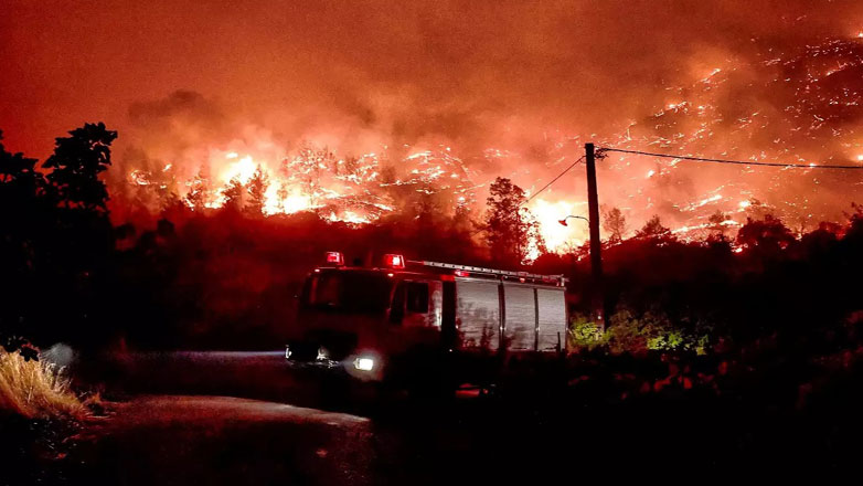 Η καταστροφική πυρκαγιά, που ξέσπασε από το πρωί της Κυριακής σε δασική έκταση στην περιοχή Ροζενά, εκτείνεται σε μήκος 32 χιλιομέτρων. Σε πλήρη εξέλιξη είναι το μέτωπο προς το Ξανθοχώρι και τις Βρυσούλες, χωρίς να απειλεί σπίτια. Καίει αγροτικές καλλιέργειες και δασικές εκτάσεις.
