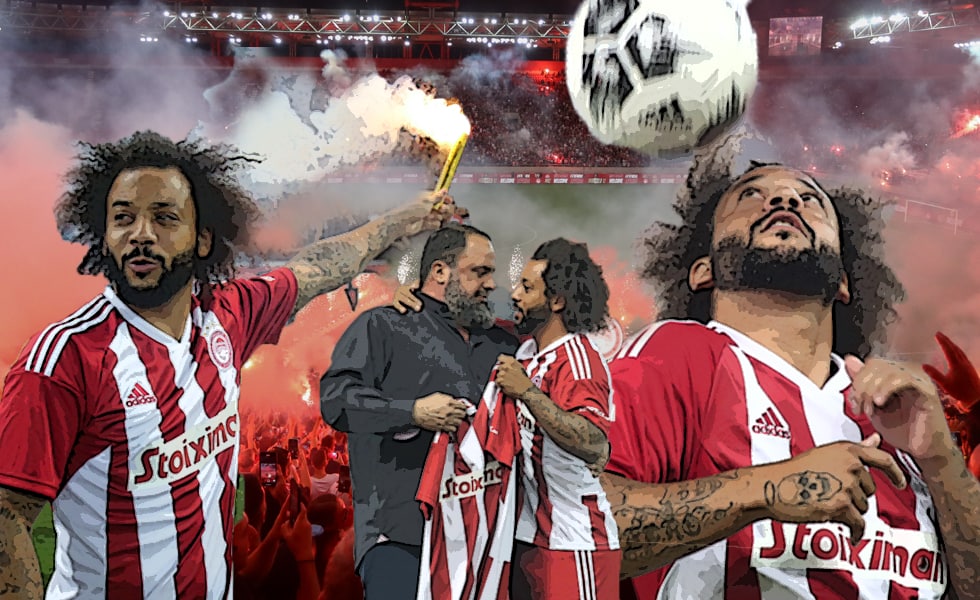 Μια.. θρυλική υποδοχή, για τον Μαρσέλο. Στα πρότυπα των μεγάλων κλαμπ, ο Ολυμπιακός παρουσίασε το βράδυ της Δευτέρας (05/09) -σε μία “λαμπερή” τελετή στο «Γ. Καραϊσκάκης»- έναν από τους κορυφαίους παίκτες που έχουν πατήσει το πόδι του στα ελληνικά γήπεδα τις τελευταίες δύο δεκαετίες, τον Βραζιλιάνο πρώην αρχηγό της Ρεάλ Μαδρίτης.