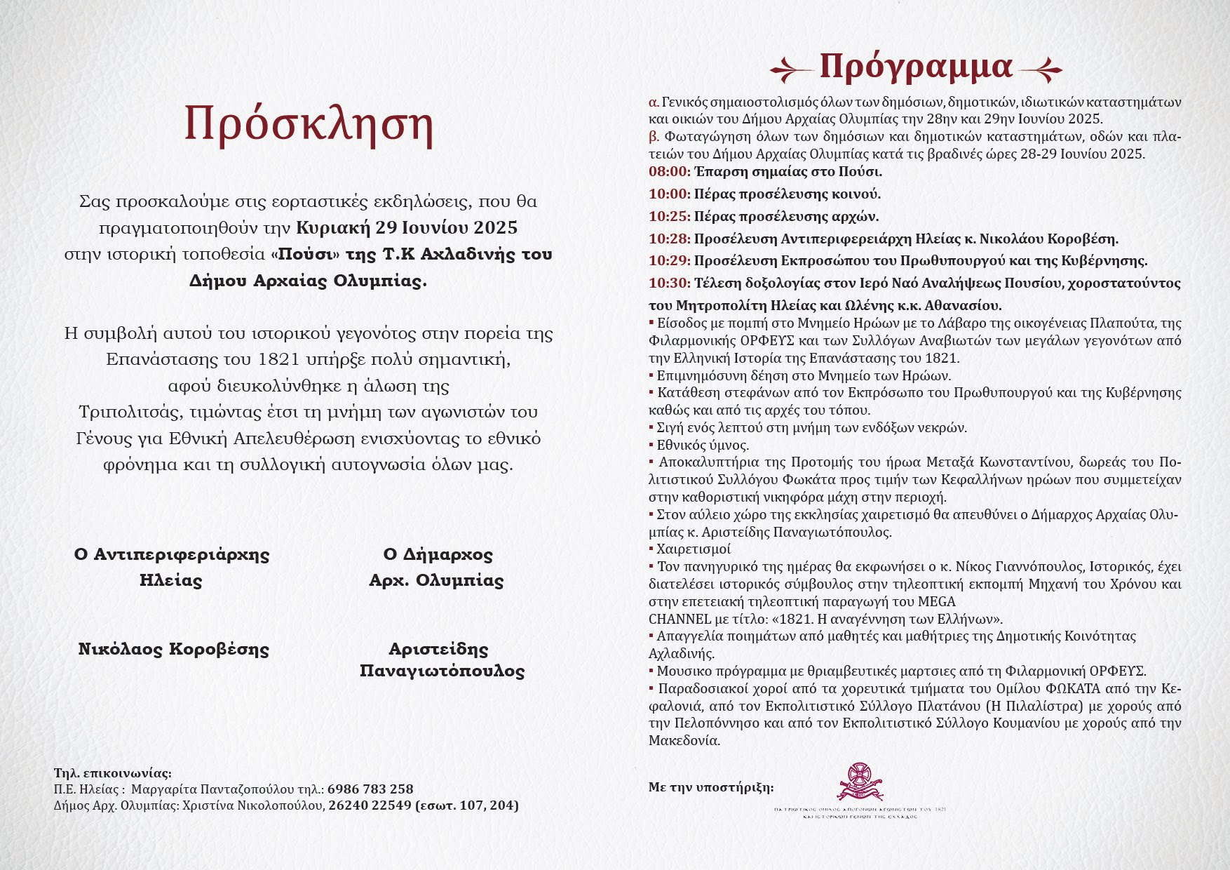Με επισημότητα θα γιορτασθεί η επέτειος της Μάχης στο Πούσι το 1821